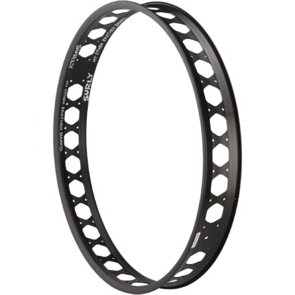 A key ingredient to the Moonlander’s proprietary wheel system is the Surly Clown Royal, a 100mm-wide fat bike rim designed exclusively for the 6.2” Molenda tire. Its 24-inch diameter maxes out tire volume for the Moonlander’s frame, helping the bike achieve ultimate flotation and traction over previously unridden terrain.