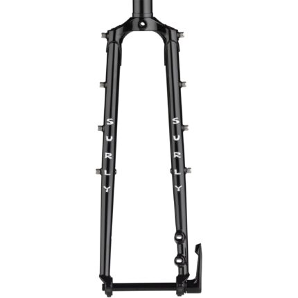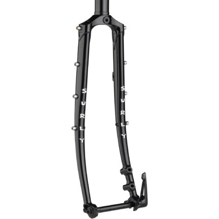 Our Wednesday Fork is made of the same 4130 Chromoly steel as its frame counterpart. It’s ready for trail use and features butted and tapered blades with thru-axle dropouts spaced at 150mm. It features many accessory barnacles (or braze-ons, if you prefer to speak in “official” terms) like barrel bosses at the dropouts and crown, mid-blade thru-blade eyelets and Three-Pack Mounts on both fork legs.